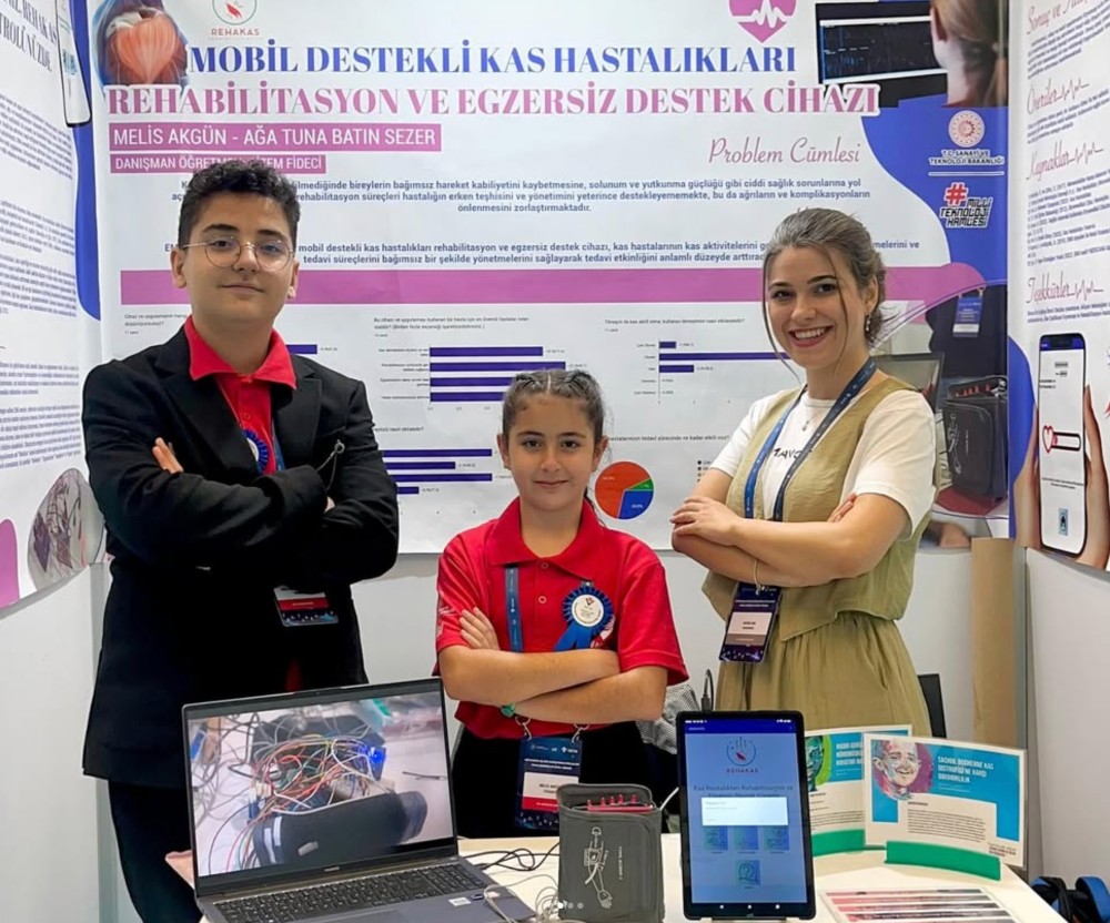 Gizem Fideci öğretmenimiz danışmanlığında, öğrencilerimiz Melis Akgün ve Ağa Tuna Batın Sezer tarafından geliştirilen “Mobil Destekli Kas Hastalıkları Rehabilitasyon ve Egzersiz Destek Cihazı” projesi, TÜBİTAK Ortaokul Öğrencileri Araştırma Projeleri Yarışması Bursa Bölge Sergisi’nde birinci oldu! 👏