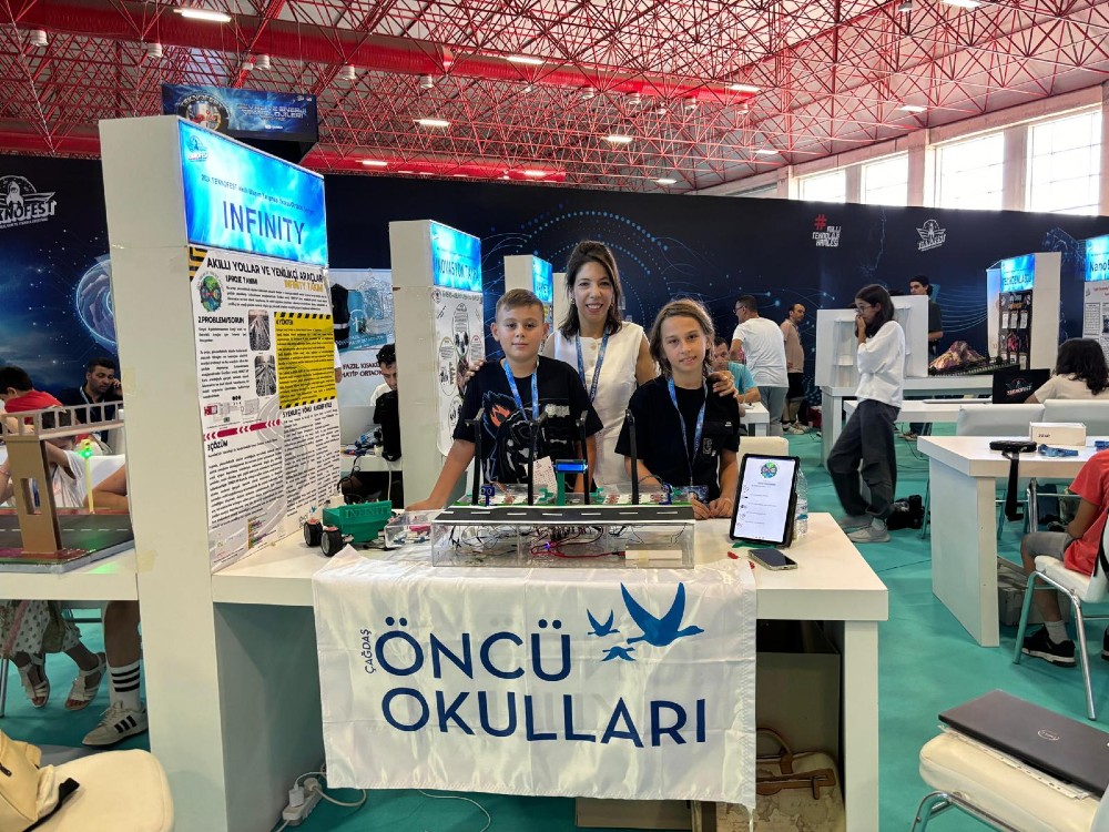 Öğrencilerimiz Aras Genç ve Ege Demirel, danışman öğretmenleri Zeynep Ankara ile birlikte "Akıllı Yollar ve Yenilikçi Araçlar" projesi kapsamında jüri sunumlarını başarıyla gerçekleştirdiler. Projelerindeki yenilikçi enerji çözümleri ve sürdürülebilir ulaşım vizyonu, jüri tarafından büyük ilgiyle karşılandı. Öğrencilerimizi tebrik ediyor, gelecekteki başarılarının devamını diliyoruz!