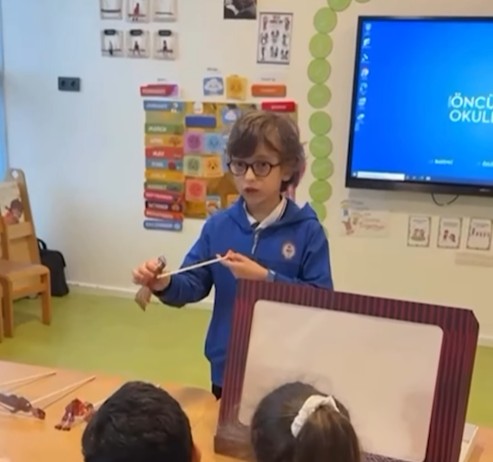 Bursa’mızın kültürel miraslarından biri olan Karagöz ve Hacivat gölge oyununu okulumuza taşıyan Çağdaş Öncü Anaokulu öğrencilerimizi Karagöz, Hacivat, Bebe Ruhi, Zenne ve Çelebi ile tanıştıran ve geleneksel gölge oyunumuzu sevdirip yaşatan misafirimiz Yusuf Emre Korucu’ya teşekkür ederiz.