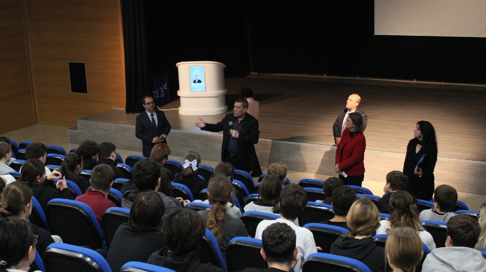 Eğitimci Yazar Sadık Gültekin, 8.sınıf öğrencilerimiz için “sınavlar, hedefler, kaygılar ve özgüven” üzerine anlamlı bir sohbet gerçekleştirdi. Öğrencilerimize LGS hazırlık sürecinde etkin ve verimli çalışmaları konusunda değerli ip uçları veren Gültekin, en zor şartlarda bile büyük başarılar elde etmiş olan öğrencilerden örnekler gösterdi. Sadık Gültekin, sınavlarda başarılı olmak için motivasyonun çok önemli olduğuna ve herkesin kendisini motive etmek için bir sebebi, bir hedefi olması gerektiğine vurgu yaptı. Öğrencilerimizin sorularını da içtenlikle cevaplayan Sadık Gültekin’in önemli tespitleri, duygu yüklü örnekleri ve engin deneyimlerinden en iyi şekilde yararlanmış olduk.